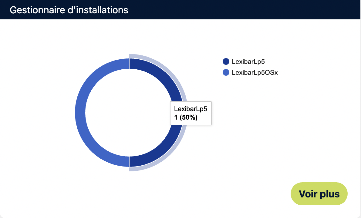 | Gestionnaire des installations | Ce graphique montre la proportion des installations associées à la licence. C'est aussi en appuyant sur "Voir plus" qu'il sera possible d'avoir la liste de tous les ordinateurs et iPad connectés à son compte. Cette liste a pour fonction de gérer les connexions de ces appareils. L'article ci-joint explique l'opération à effectuer afin d'y parvenir. |