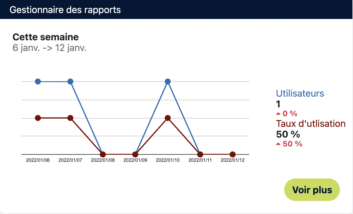| Gestionnaire des rapports | Cette dernière section a pour fonction d'afficher le taux d'utilisation de la licence et le nombre d'utilisateurs. Ce gestionnaire montre également les lieux de connexion de la licence ainsi que le type d'appareil utilisé (Windows, macOS ou iOS). |