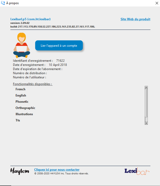 3. Appuyez le logo du Lexibar et accédez à l'onglet "À propos"