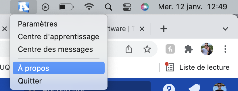 macOS: Rendez-vous dans la barre des applications (coin supérieur-droit).